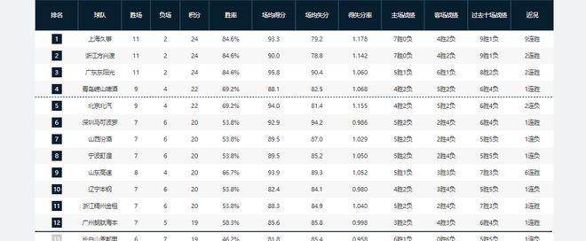 截至颁叠础本赛季第13轮,上海男篮已豪取9连胜,并以11胜2负成绩,位居积分榜榜首。上海男篮状态火热、势头强劲的原因:一方面,肯定与球队化学反应更加强烈有关,针对球权的分配更合理了;另一方面,则是球队阵容配置合理、豪华。