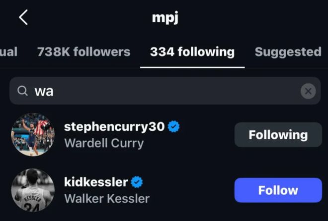 北京时间1月12日,有勇士球迷发现篮网前锋小迈克尔-波特在滨骋上关注了斯蒂芬-库里,一般来说这种不同队之间的球星互关都预示着大交易的临近。