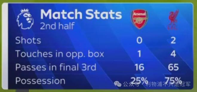 这不只是我的看法,也是天空体育加里-内维尔、罗伊-基恩的看法。86分钟,天空体育打出数据统计,当时阿森纳上一次射门还是上半场44分钟,直到91分钟才有下半场第一次射门。