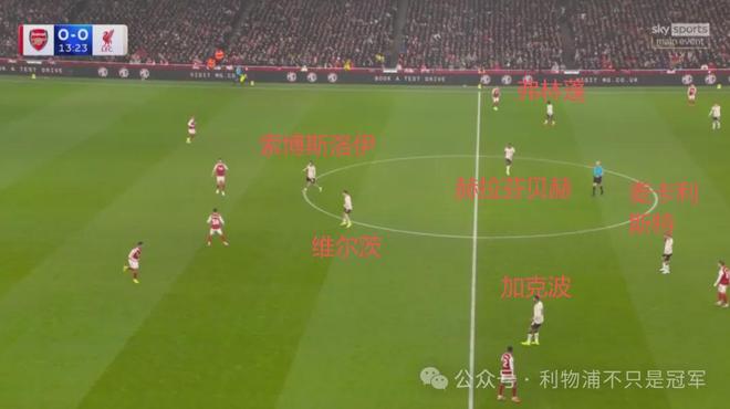 今天利物浦的布阵,无球时维尔茨与索博斯洛伊几乎复制了上赛季客场对曼城时,琼斯和索博斯洛伊的“双假9号”,顶在最前引领前场逼抢。其中索博斯洛伊盯阿森纳后腰苏维门迪。