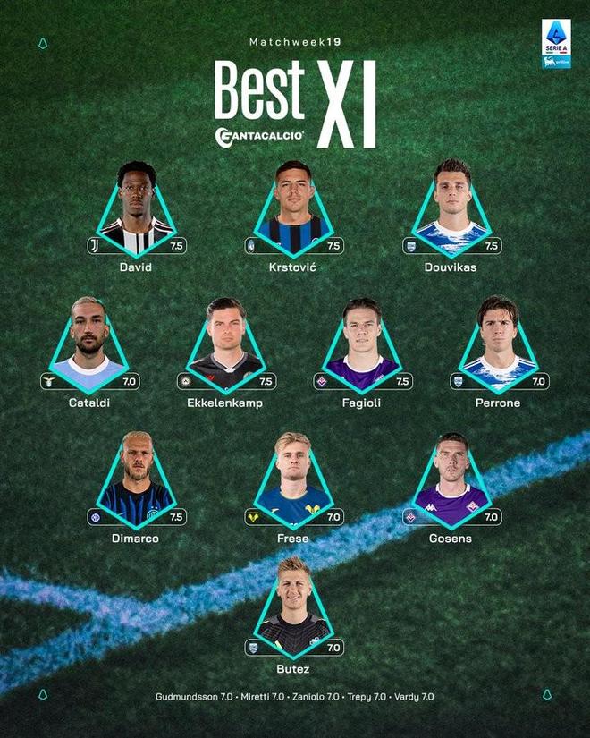 意甲第19轮最佳阵容:乔纳森-戴维、迪马尔科、法乔利入选