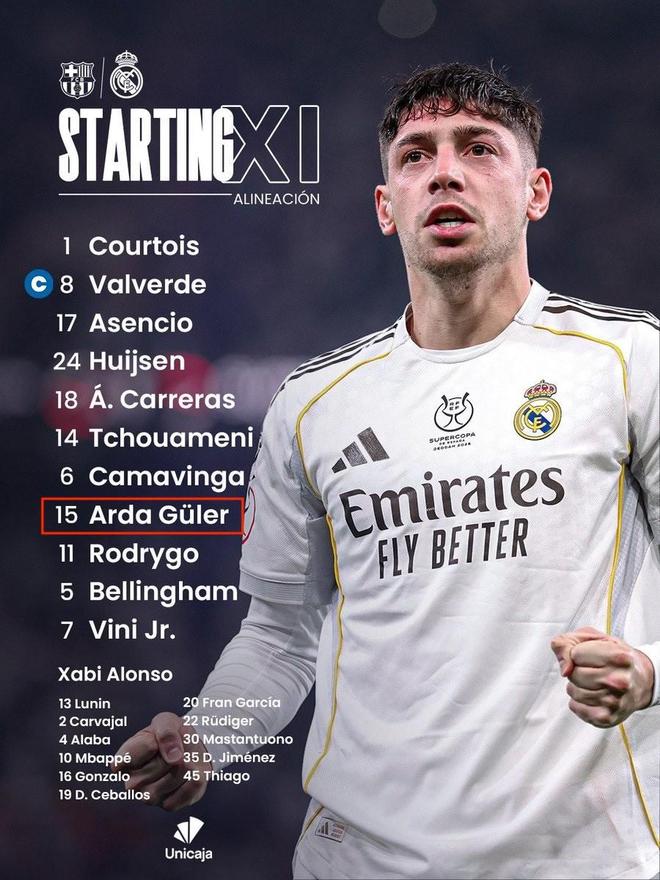 西超杯决赛,皇家马德里对阵巴塞罗那,赛前,皇马公布首发名单疑似出错,一开始是居莱尔首发,随后改成了贡萨洛-加西亚首发的正确版本。