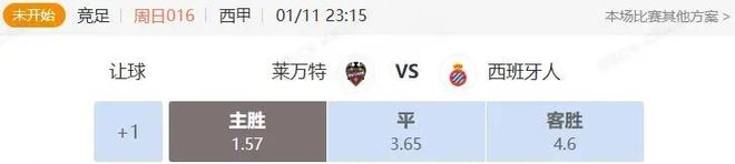 竞足 周日016 西甲 莱万特VS西班牙人