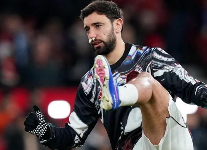 布鲁诺-费尔南德斯在热身时脸部遭受重击,随后被医护人员检查并治疗。